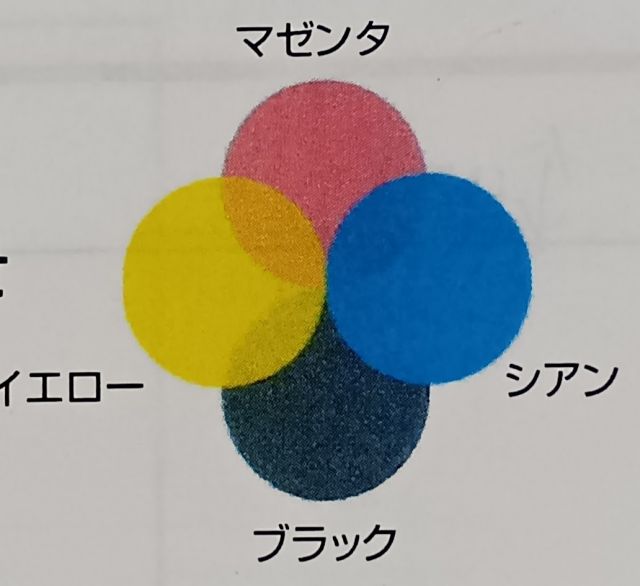イエロー、マゼンタ、シアン、ブラックの4色を混ぜ合わせ色を再現していきます。