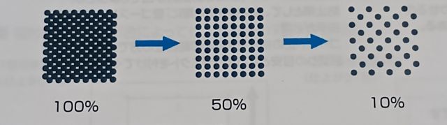 また、インクの密度を変えることで色の薄さも変えていくことができるので、